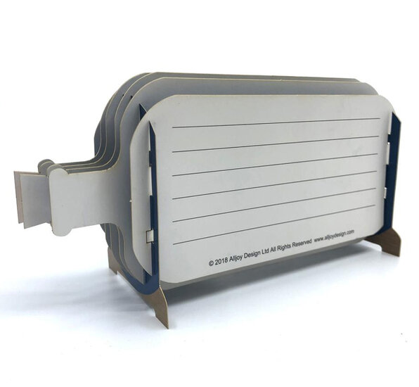 De kaart bestaat uit 6 lagen, uitgevouwen is het een kijkdoos in de vorm van een fles. Op de achterkant is ruimte voor eigen tekst.