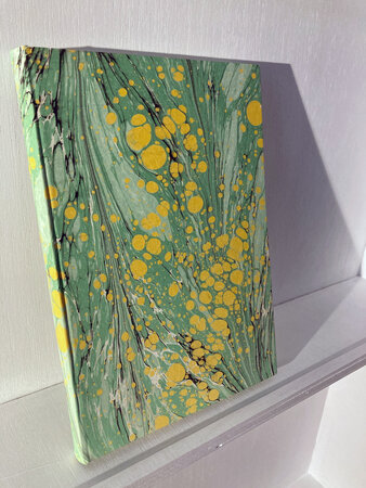 Er worden verschillende patronen gebruikt, Het marmeren zorgt ervoor dat de omslag van ieder notitieboek uniek is.
